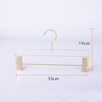 Wholesale Custom logo Skirt Display Trousers Hangers with Gold Clips clear Acrylic Hangers